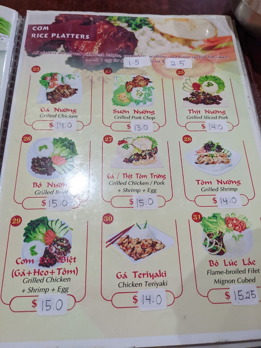 Served with fresh lettuce, cucumbers, tomato, carrot, and house special fish sauce. Can add fried eggs.